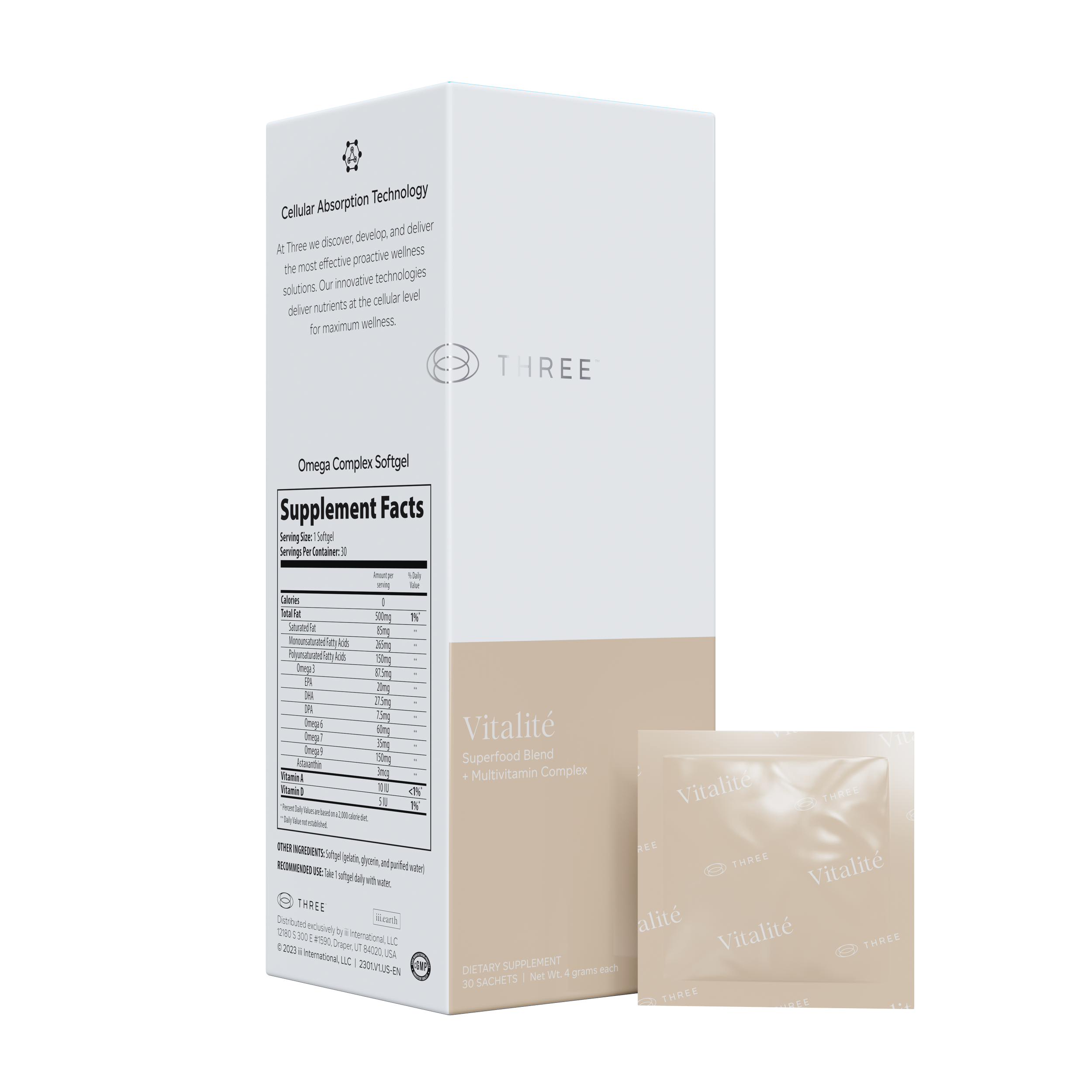 Vitalité is a powerful, daily supplement that works at the cellular level to deliver the essential nutrients your body needs to perform at its best every day.